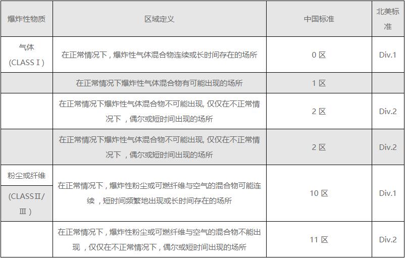 1) 在爆炸性氣體區(qū)域環(huán)境(0區(qū)、1區(qū)、2區(qū))不同電器設(shè)備應(yīng)用安全級(jí)別的區(qū)劃。如旋轉(zhuǎn)電機(jī)選型分成隔爆型(編號(hào)d)、正壓型(p)、增安型(e)、無火花型(n)