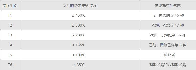 3) 引燃某類介質(zhì)的溫度分組的區(qū)劃。主要分成T1-450℃